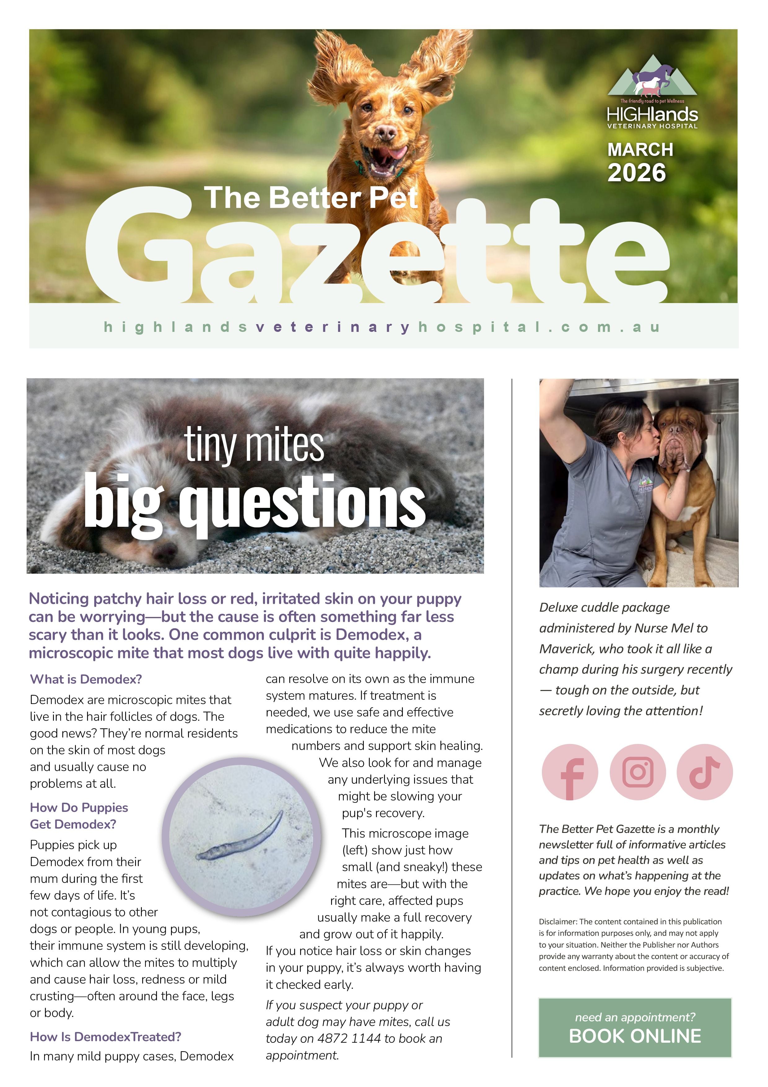 HIGHland Veterinary Hospital’s Better Pet Gazette is full of informative articles and tips on pet health, as well as updates on what’s happening at the practice. Sign up below to have all news, offers, and updates from us delivered straight to your inbox!