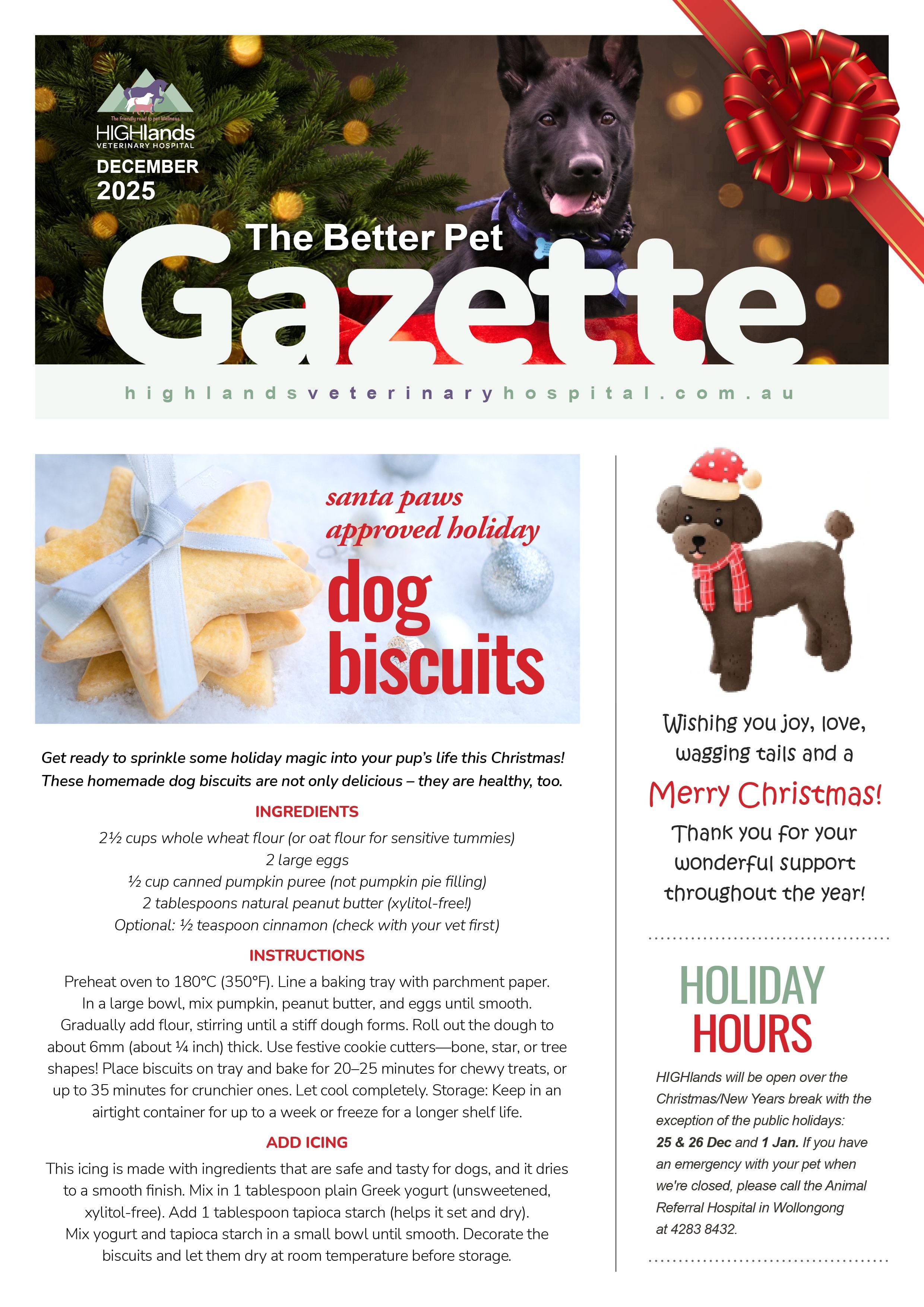 Welcome to our monthly HIGHlands Veterinary Hospital newsletter! Inside this month’s edition you can read all about: Choosing Love Over Surprises: The case against gifting pets Dental Offer: Save $100 on your pets dental Helping Paws Raffle...